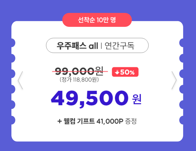 우주패스 ALL 연간구독 50% 쿠폰 받기
