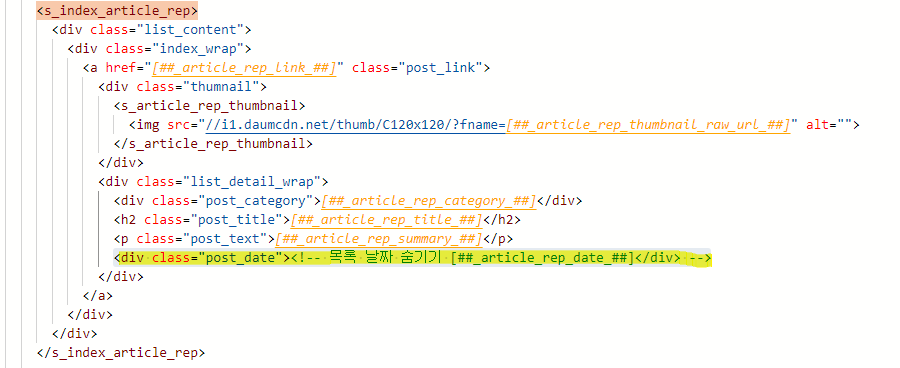 300번째 줄 정도에 <s_index_article_rep> 을 찾아줍니다. 제 블로그에는 이 내용이 3개가 있는데 가장 아래에 있는 3번째 친구를 찾아줍니다. 아래처럼 html 코드를 수정해주시면 됩니다.